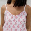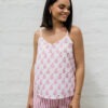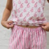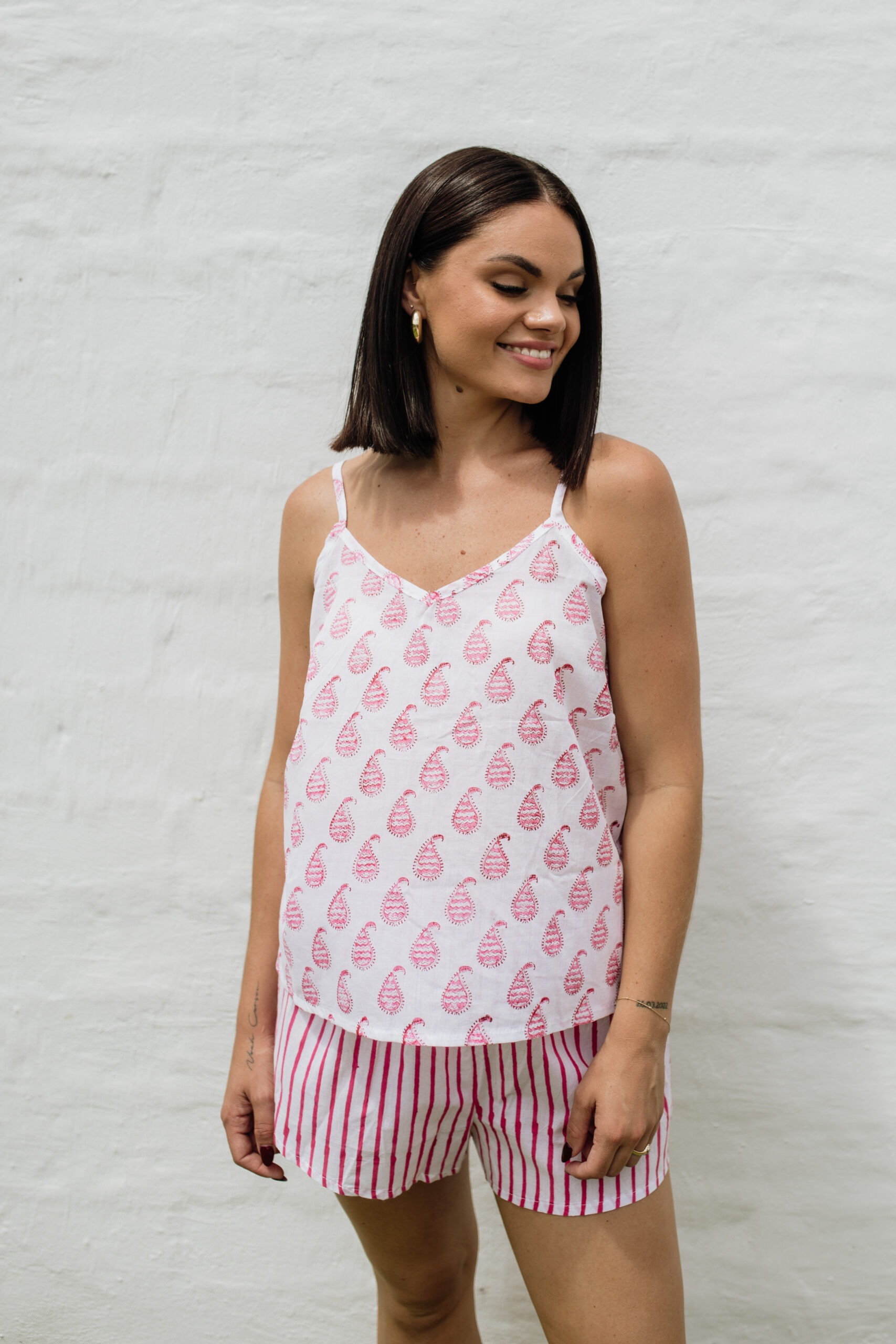 This cute pj set includes a strappy cami-style top and a pair of sleep shorts, made from our 100% Indian cotton. Light, breathable and soft on your skin. Keeping you cool throughout the night.