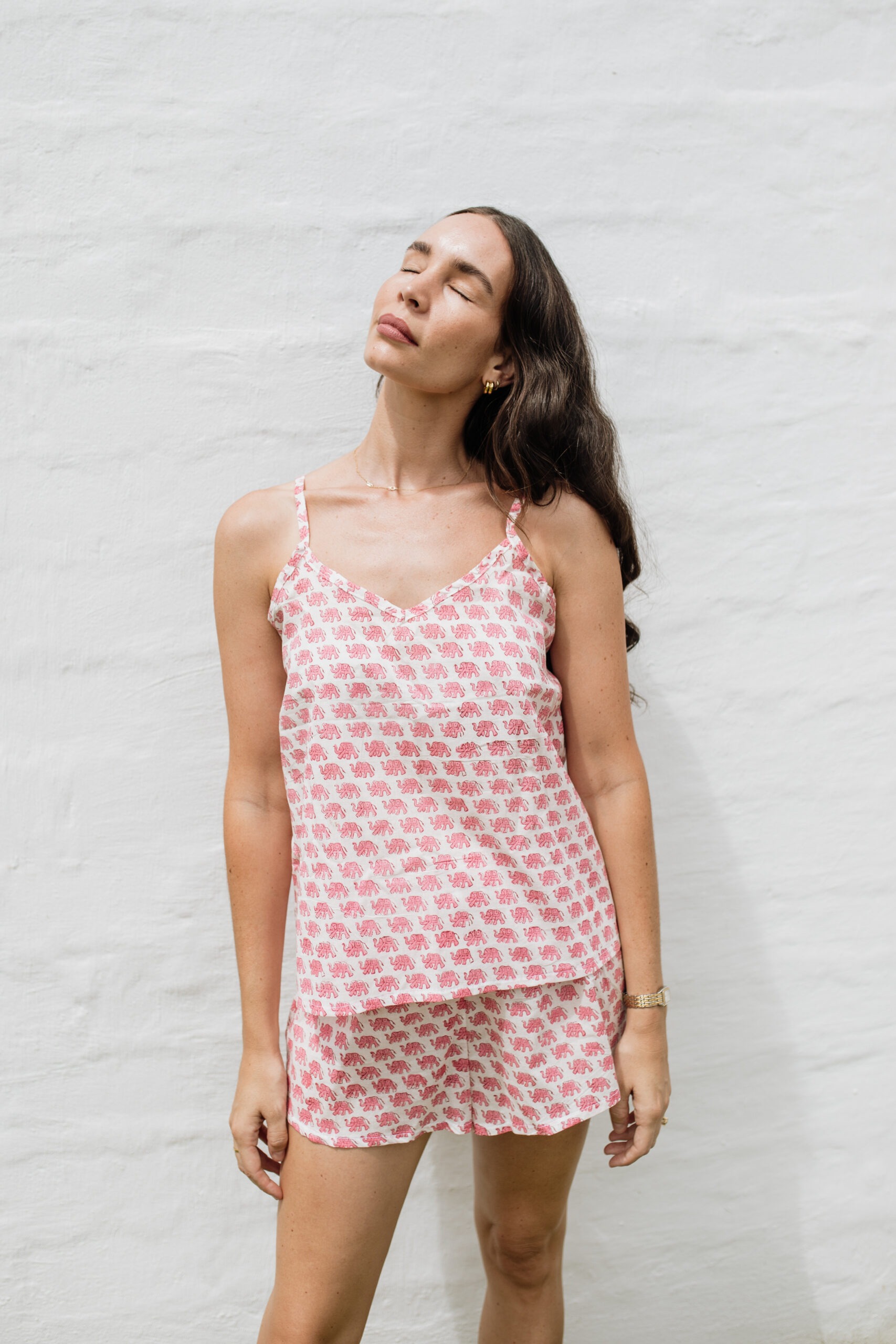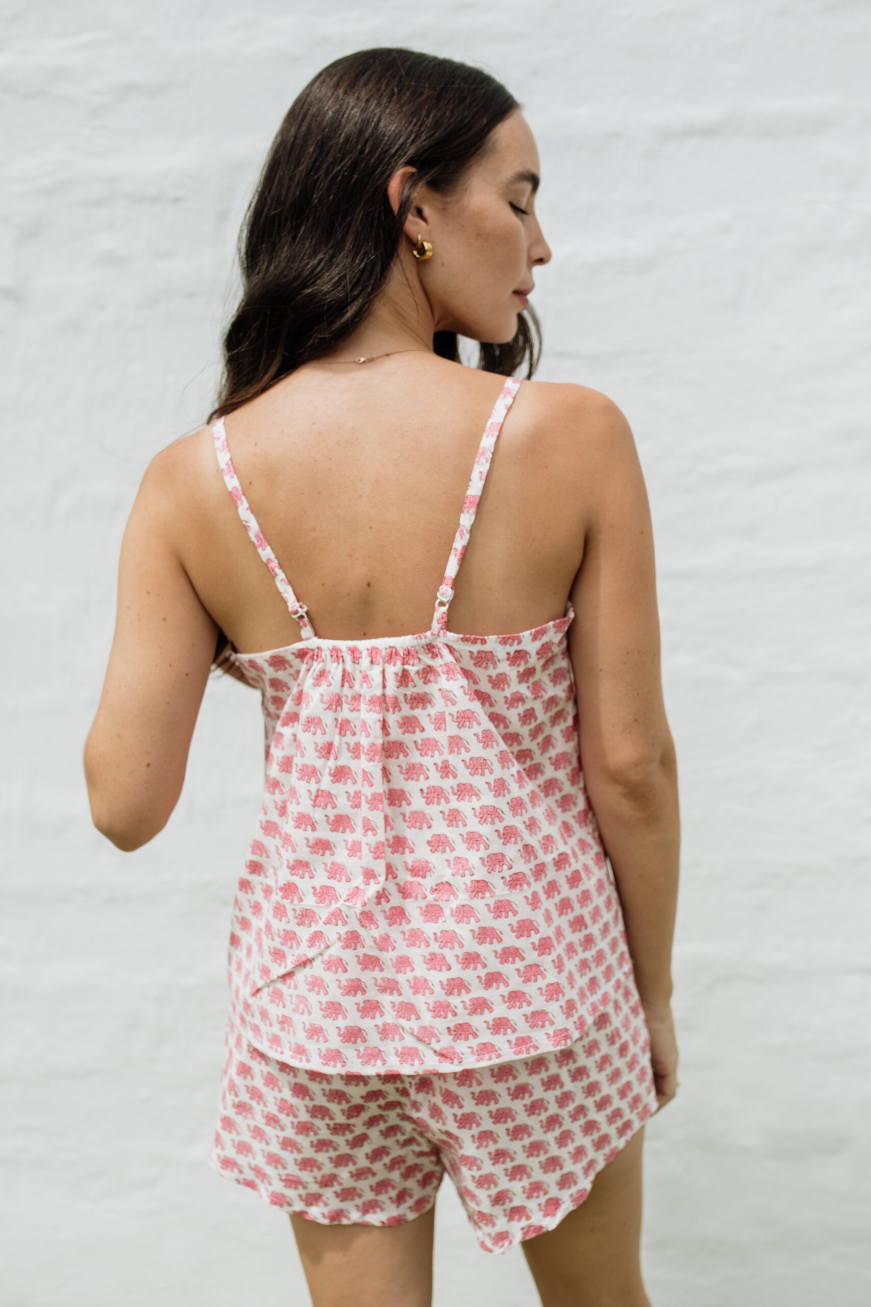 This cute pj set includes a strappy cami-style top and a pair of sleep shorts, made from our 100% Indian cotton. Light, breathable and soft on your skin. Keeping you cool throughout the night.