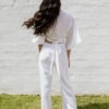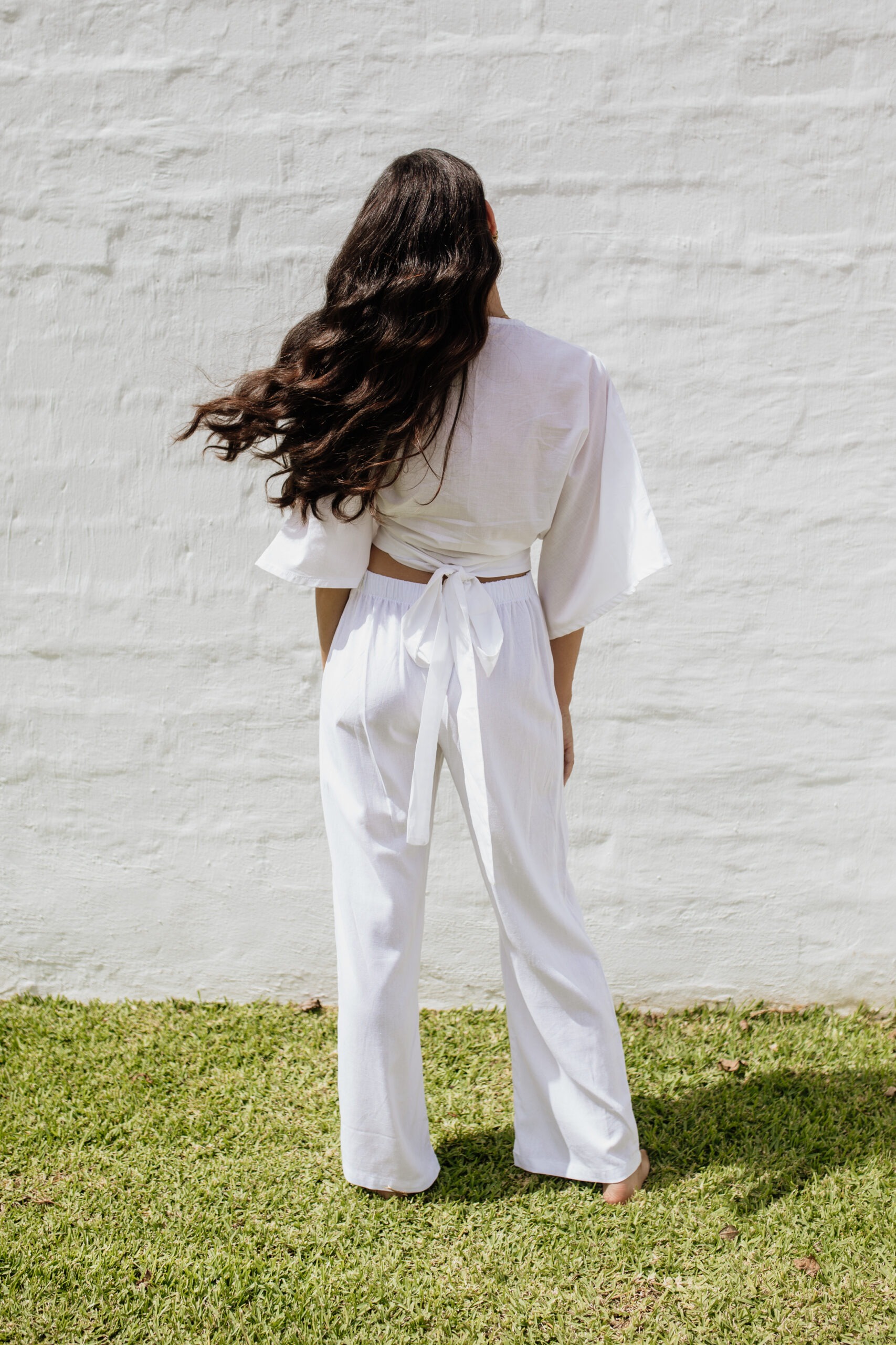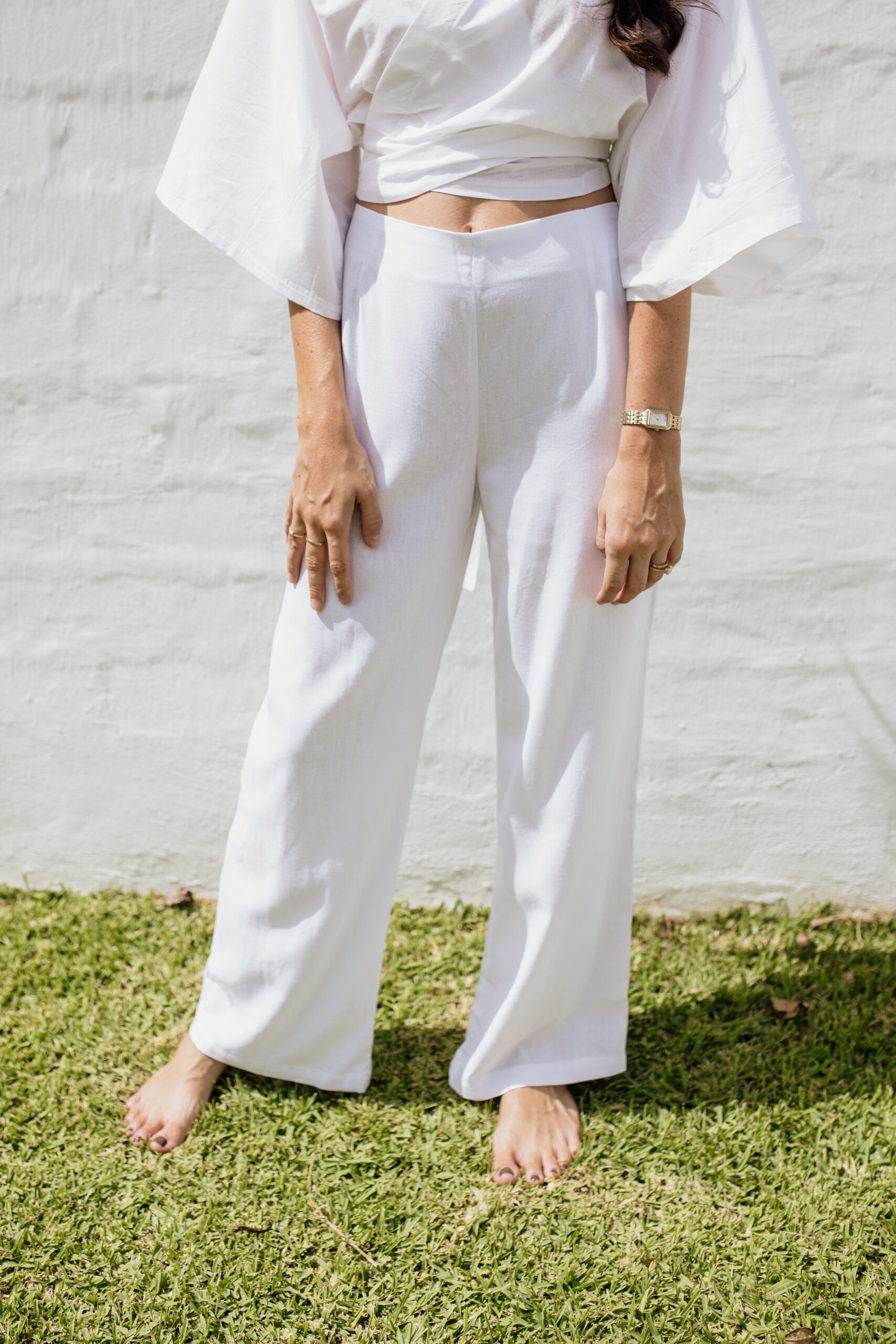 For lighter colours, we use viscose-linen and cotton-linen blends. An intentional choice to offer a little more coverage while maintaining the same airy comfort. A modern essential that balances structure and softness, with ease. The flat front waistband creates a clean, polished look, whilst carefully placed darts add subtle shaping for a more tailored silhouette. At the back, an elasticated waistband ensures a flexible, comfortable fit that moves with you without compromising on style. Pair them with a Kimono blouse or collared blouse for a more formal look or a simple tee for a day out and about.