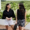 This blouse features a flattering wrap design that cinches at the waist for an adjustable, feminine fit. The relaxed sleeves and fluid drape allow for easy movement and comfort. This wardrobe staple is ideal for both casual days and dressed-up evenings. Crafted from our signature breathable, lightweight cotton, this piece is designed to keep you cool while offering a soft, natural feel against your skin. Pairs beautifully with our wide leg pants and flat front shorts and even a pair of jeans, creating a sophisticated look.