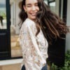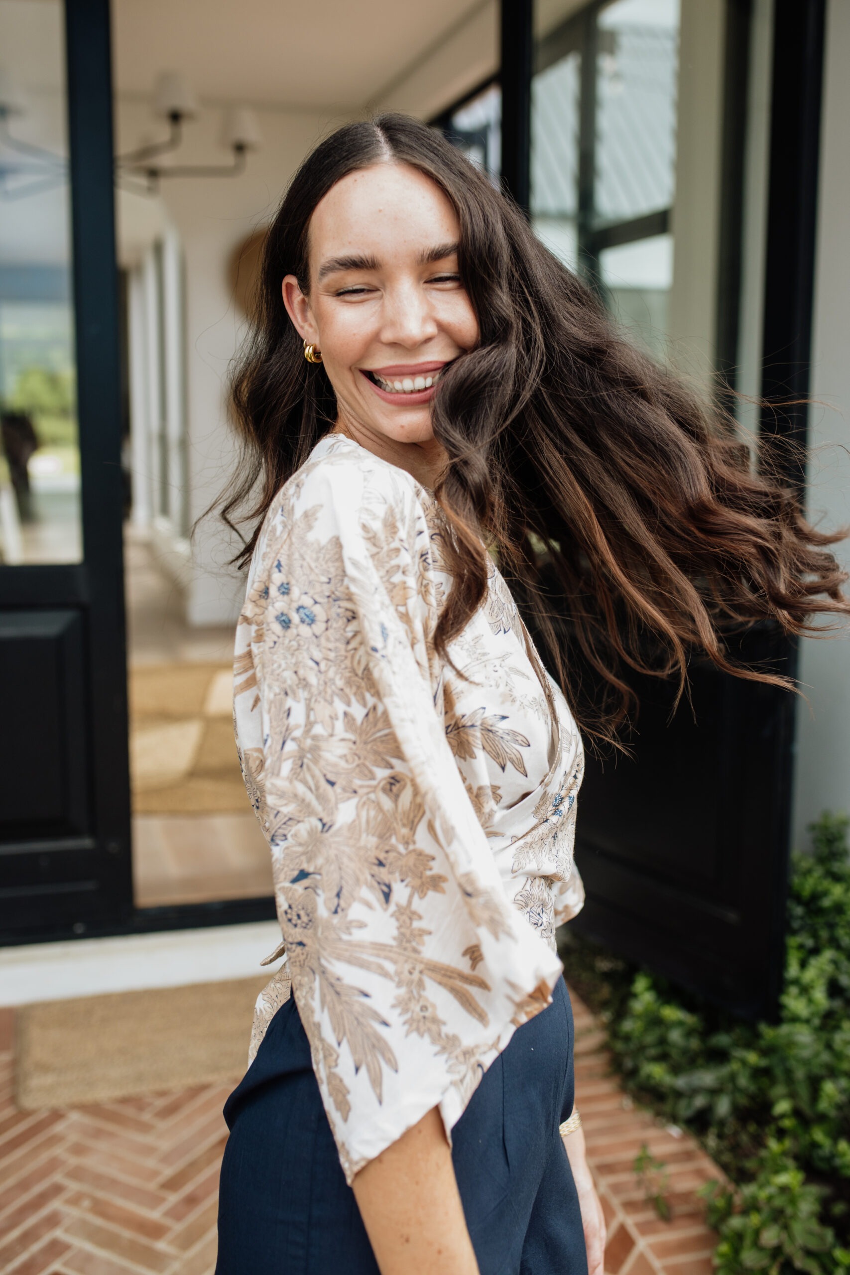 This blouse features a flattering wrap design that cinches at the waist for an adjustable, feminine fit. The relaxed sleeves and fluid drape allow for easy movement and comfort. This wardrobe staple is ideal for both casual days and dressed-up evenings. Crafted from our signature breathable, lightweight cotton, this piece is designed to keep you cool while offering a soft, natural feel against your skin. Pairs beautifully with our wide leg pants and flat front shorts and even a pair of jeans, creating a sophisticated look.